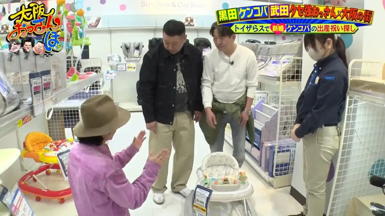 一行は、長男が生まれたばかりのケンコバの出産祝いを買いに、松原の人気スポット「セブンパーク天美」内の「トイザらス・ベビーザらス」へ。 |