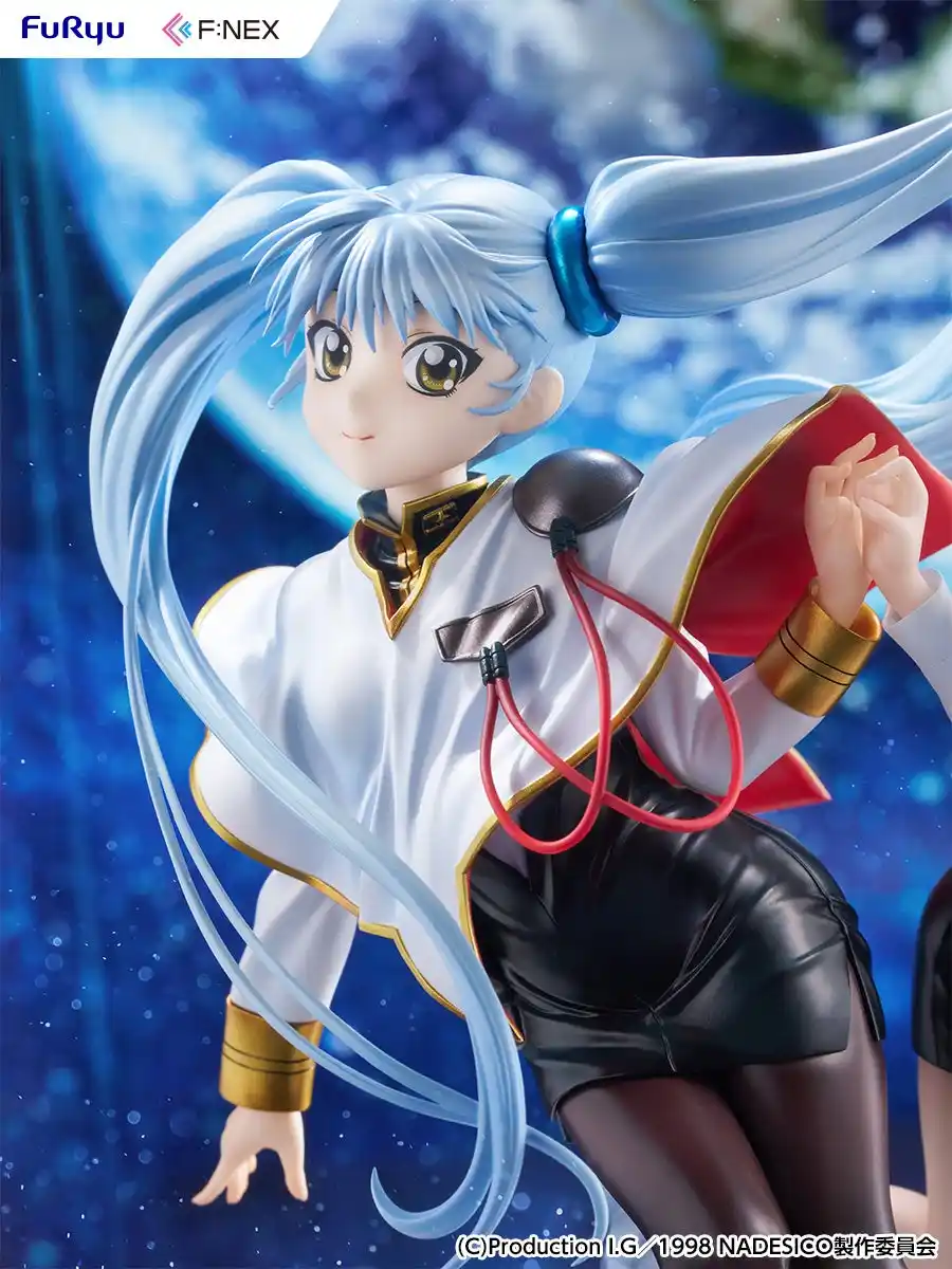 今回『F:NEX』では、本キャラクターのフィギュア化にあたり、アニメキャラクターデザインを手がけた後藤圭二氏にご協力いただき、元イラストに新たなポーズ表現を加筆。11歳と16歳のホシノ・ルリが微笑ましく手を取り合い交差する幻想的な姿を、令和の造形技術をもちいてハイクオリティに立体化しました。ツインテールのなびく動きはもちろん、躍動感のあるポーズは空気の流れを感じさせる自然な仕上がりに。さらに、彩色では髪留めや靴に色分けをしつつもメタリック塗装を行うことで、素材の質感を丁寧に表現しています。