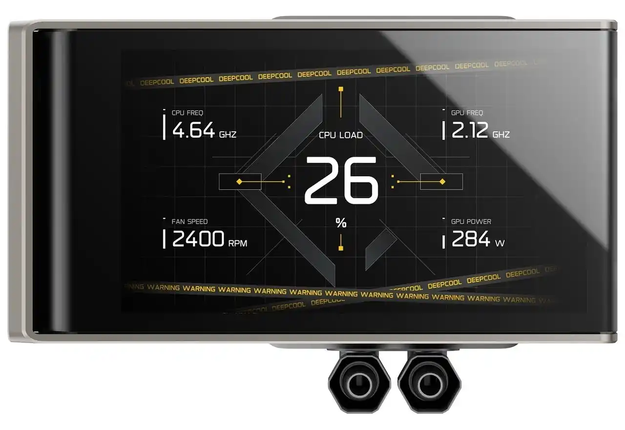 マグネット式のポンプキャップには3.4インチのIPS LCDパネルを搭載しており、解像度480×480に対応。CPUの温度や使用率などのステータスを表示できるほか、「DeepCreative:コントロールセンター」を使用することでお好みの画像やMP4動画も表示可能です。 |