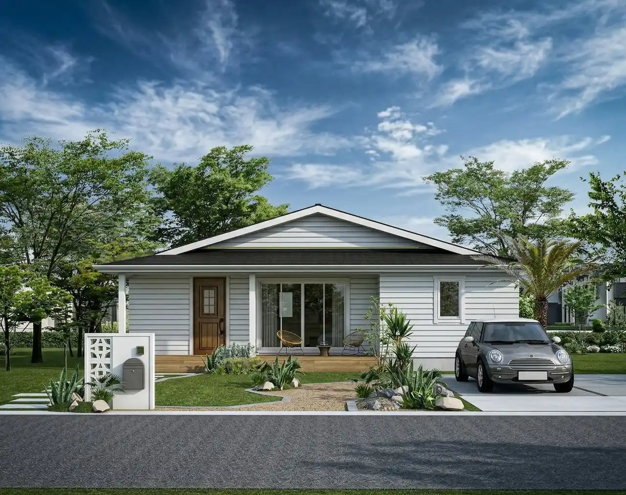 | 昨今の物価高騰を受け、住宅購入において「本当は好きなデザインにしたいが妥協せざるを得ない」と悩む方が増えています。また、アメリカンデザインの住宅に対して「本格的すぎて少し重たい」と感じる声もありました。そこでGLホームは、今の時代に合った「ちょうどいいアメリカンモダン」をコンセプトに、無理なく買えて楽しく暮らせる家を発売し、前年比135%もの反響を得ています。今回のリニューアルは「LIGHT AMERICAN」の基本コンセプトはそのままに、外観デザインに女性ターゲットを意識したホワイトとグリーンを追加しています。 | |||