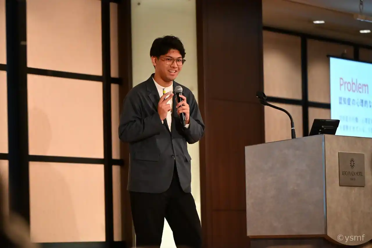 プロトタイプ部門 大学生・一般 2,000万円枠の受賞者宮下拓磨氏は、「認知症というテーマはニッチだと見られやすく、初期段階では理解や応援を得にくいこともあったが、この受賞によって一気に駆け抜けていく力になる」とコメントしました。さらに、資金面に加え、審査員や関係者から具体的な助言を得られることに触れ、「このレバレッジをかけて、認知症をめぐる世界を変えられるよう走っていきたい」と語りました。 |