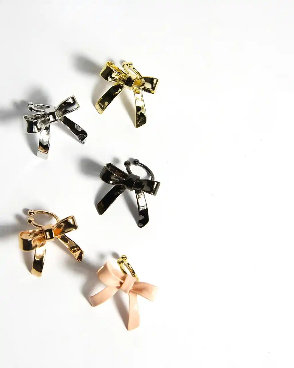 また、耳元を可憐に彩るリボンイヤーカフには、ピンクゴールドカラーとブラックの新色が登場。 甘くなりすぎず、上品にまとまるシックなカラーです。 |