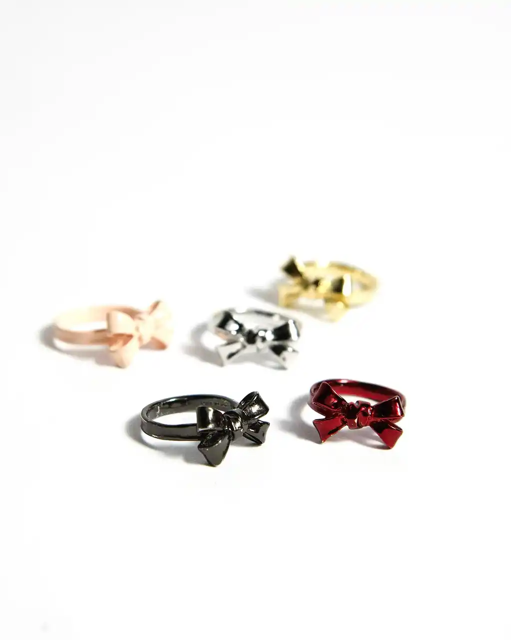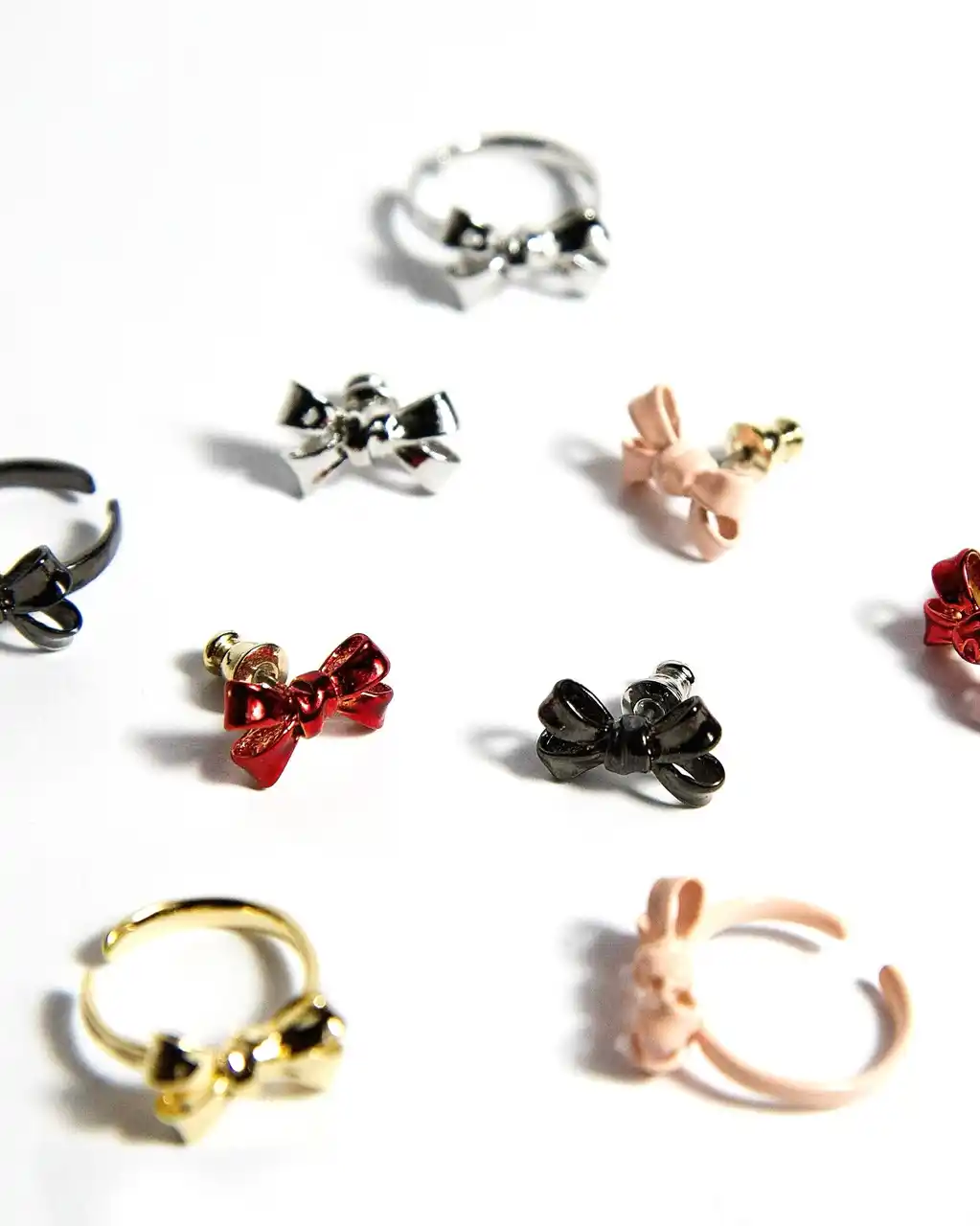 コーディネートに取り入れやすいミニマルなサイズで人気のミニリボンジュエリーに、定番のシルバー・ゴールド・ピンクの3色に加え、レディライクなレッド、クラシカルなブラックが仲間入りしました。 |