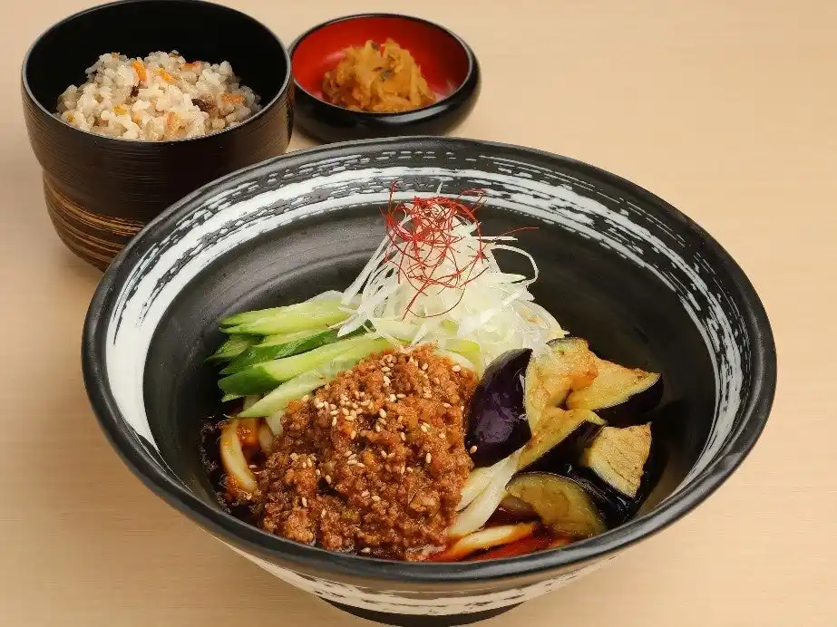 揚げ茄子と肉味噌のピリ辛冷しうどん |