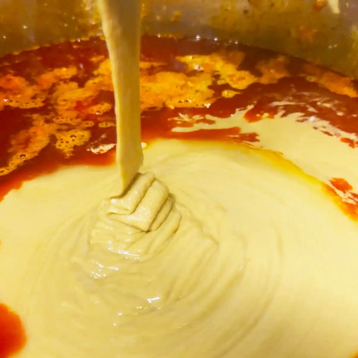 | さまざまな胡麻を練り込んだ、自家製胡麻坦々ペーストが完成しました。 | |||
