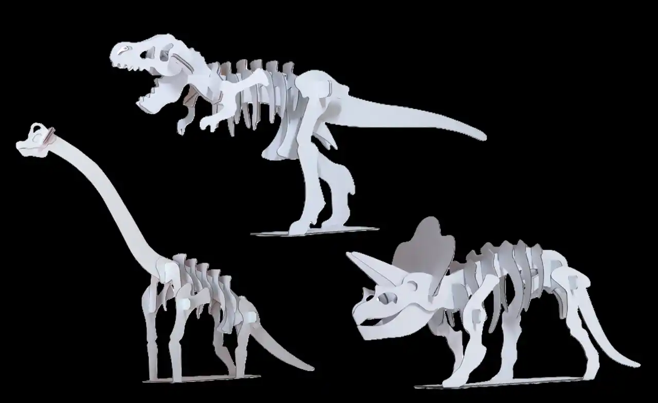 恐竜の骨格みたいなペーパークラフト。切り抜いて、好きな色を塗って、組み立ててみよう! |