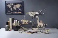 6種類の白い陶器製の恐竜から1体を選び、自由にペイントしてオリジナルの恐竜を作れます。 |