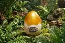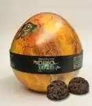 今にも飛び出してきそうな恐竜の赤ちゃんがプリントされた卵型の缶。中には美味しいチョコクランチが入っており、見た目も味も楽しめる人気のアイテムです。 |