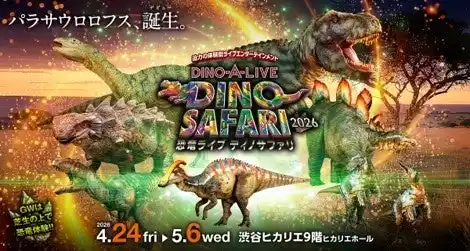 恐竜型メカニカルスーツ「DINO-TECHNE」を使った体験型ライブエンターテインメント「DINO SAFARI 2026」が、2026年4月24日(金)~5月6日(水・振休)のゴールデンウィーク期間に、渋谷ヒカリエ9階ヒカリエホールにて開催します。 公演本番に向けて、稽古場では恐竜がエンジン全開で準備中!24日からの公演開催に先駆け、小林教授のパラサウロロフスとの初対面コメント、日本最大級の恐竜グッズショップ「DINOバザール」およびワークショップの情報を公開いたします。 |