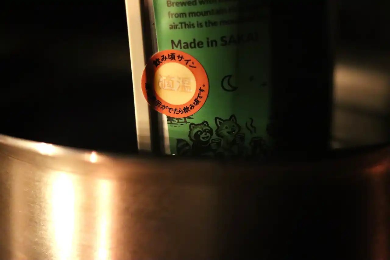 燗にして温度が約60度になると、シールの表示が「60℃」から「適温」に変わり、飲み頃を知らせます。 |