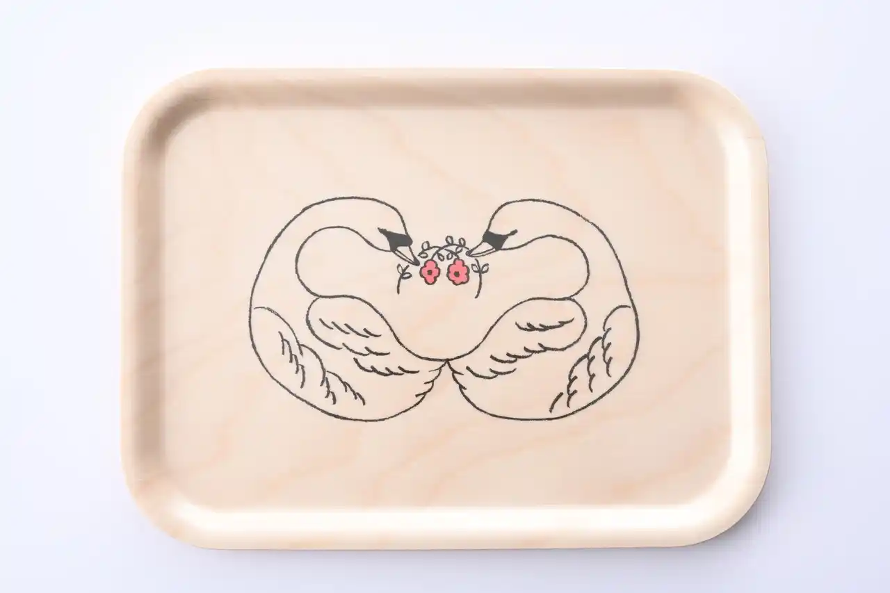 食器などを置いた時にも白鳥のモチーフが見える様にデザインされています。食卓だけでなく、ディスプレイや身近なアイテムの置き場所など、空間づくりの一端としても楽しんでいただけるアイテム。 |