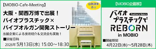 | さらに会期中には、特別セミナーとして、大阪・関西万博で展示され注目を集めた、「バイオプラスチック製パイプオルガン」の開発秘話を語るセミナーや、自動演奏によるデモ、出展企業による自社製品・技術のPR、参加者との交流を図るイベント「MOBIO-Cafe-Meeting」も実施。 | |||