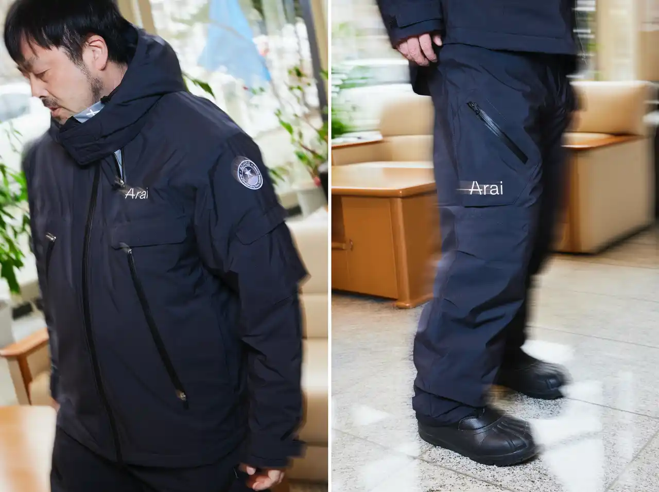 ジャケットは、首元の切り返しがアクセントになっています。さまざまな色の組み合わせを検討した結果、高級感のあるグレーを採用しました。胸から腰にかけて配置された大ぶりのポケットは荷室が2室に分かれており、スマートフォンや文房具などを整理しやすい設計になっています。 |