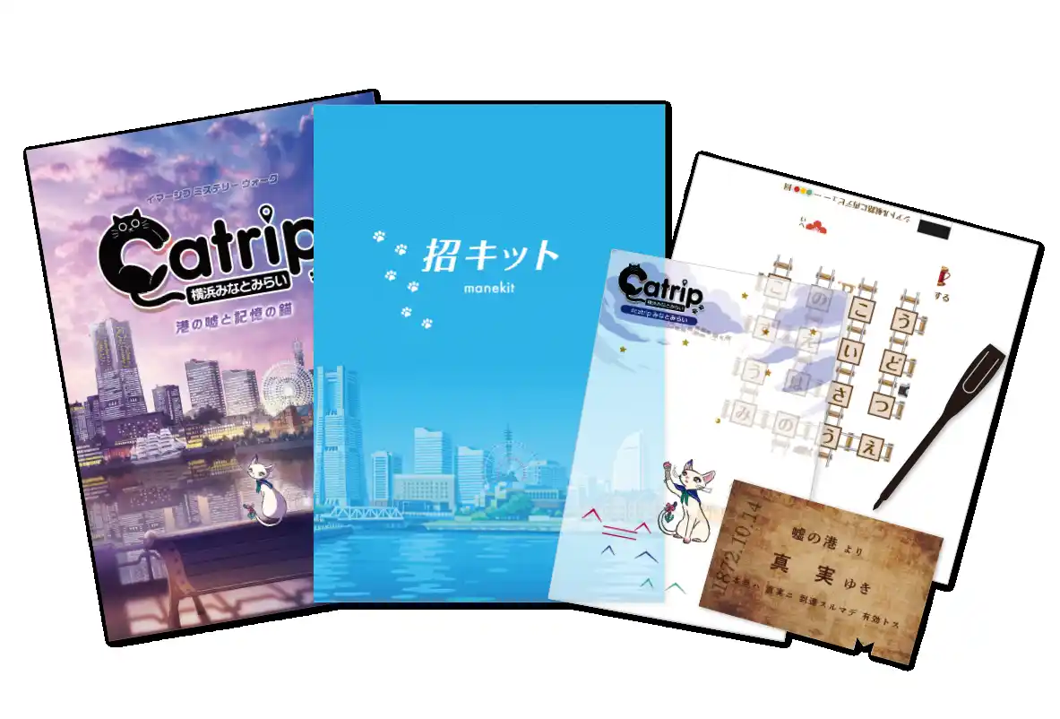 『Catrip横浜みなとみらい』は、謎解きキットとスマートフォン(LINE)を使い、横浜の街を歩きながら物語を進める体験型エンターテインメントです。 |