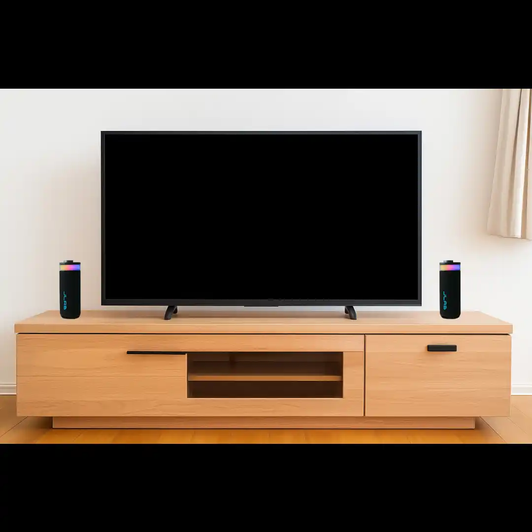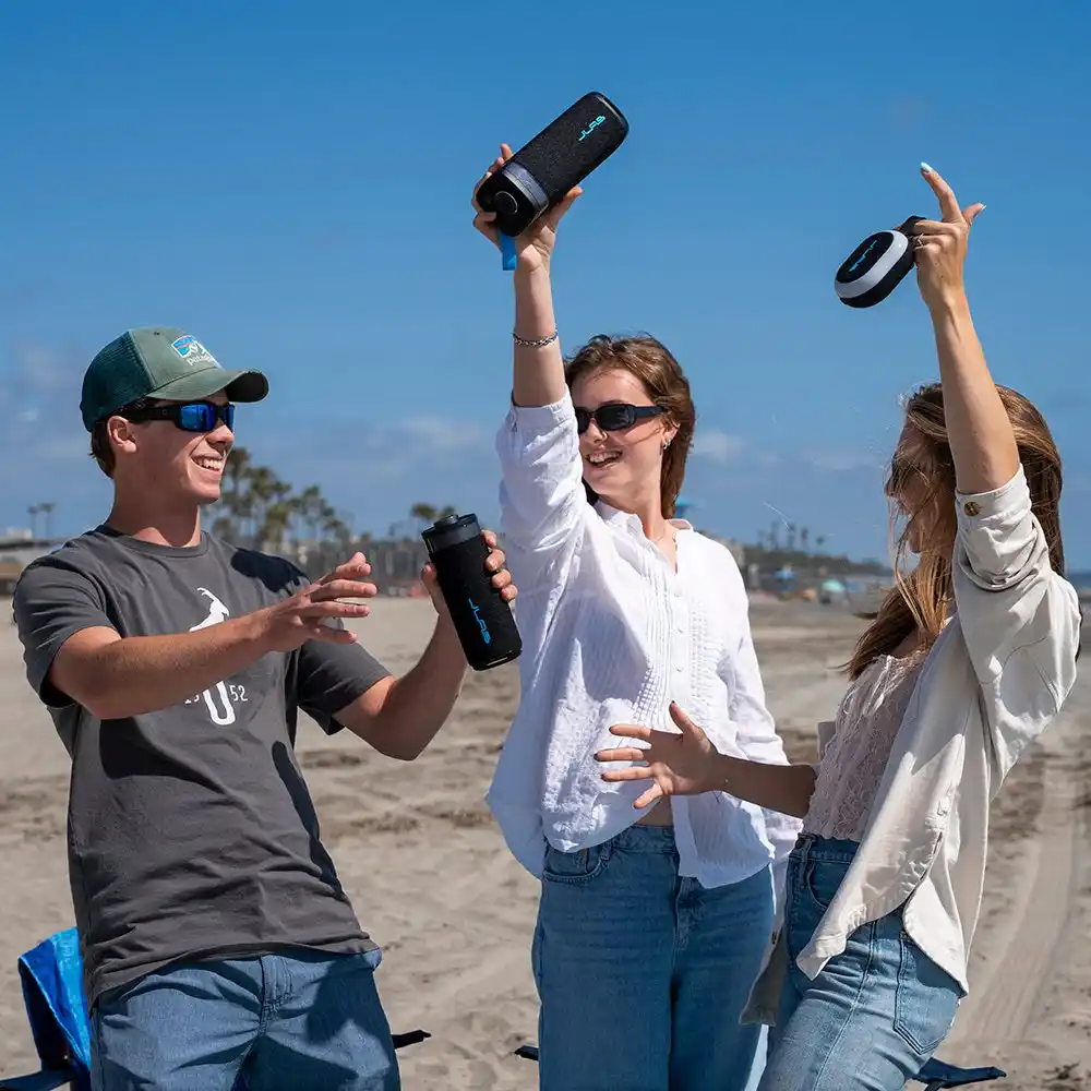 今回発売したスピーカーが2台あれば、パワフルな2チャンネルステレオシステムを構築可能に。JLabアプリから2台のスピーカーに左右のチャンネルを設定することで、より広く、没入感のある立体的なサウンドをお楽しみいただけます。 |