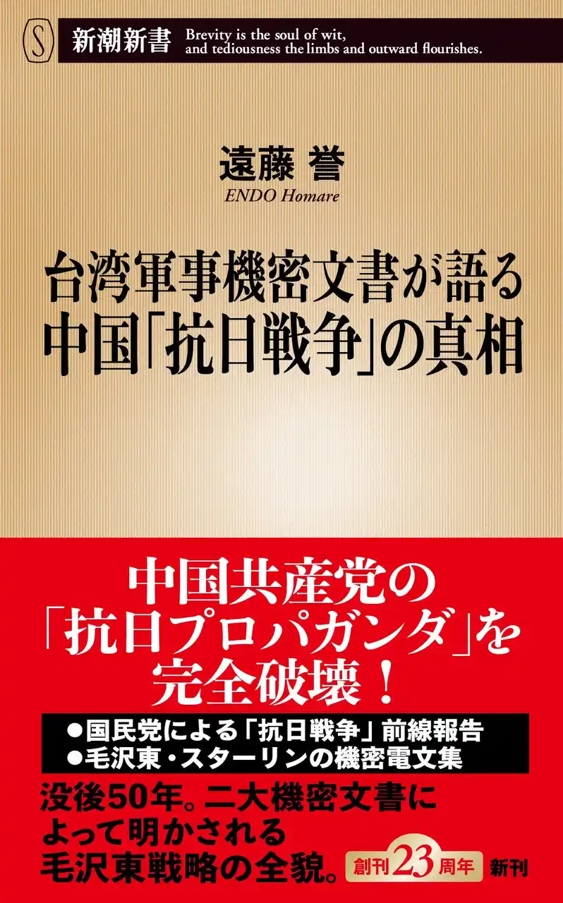 株式会社新潮社は、遠藤誉さんによる『台湾軍事機密文書が語る中国「抗日戦争」の真相』を、本日4月17日(金)に新潮新書より発売いたします。