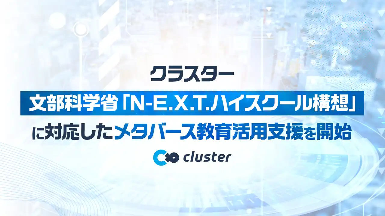 クラスター株式会社(本社:東京都品川区、代表取締役CEO:加藤直人、以下「クラスター」)は、文部科学省が2026年2月に公表した「N-E.X.T.ハイスクール構想 ※」に対応したメタバース教育活用支援を、本日2026年4月17日より開始いたします。 |