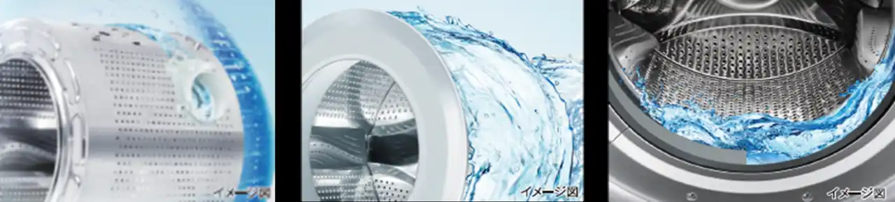 泡立たせた洗剤液のシャワーを上から勢いよく噴射して、洗剤を衣類の奥まで浸透させます。 |