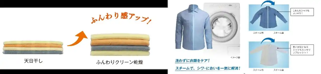 1. 乾燥と衣類ケアが変わる「ハイブリッド乾燥技術&スチームしわ取り/消臭乾燥機能」 |