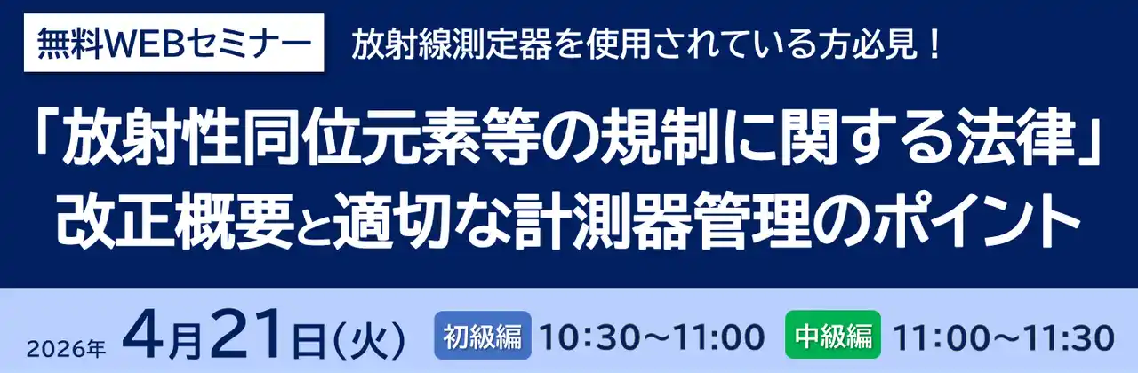 本セミナーでは、放射線測定器および校正の基礎知識をはじめ、RI法の改正概要や同法に対応した適切な計測器管理のポイントなどについて、初級・中級の2部制で分かりやすくご説明いたします。 |