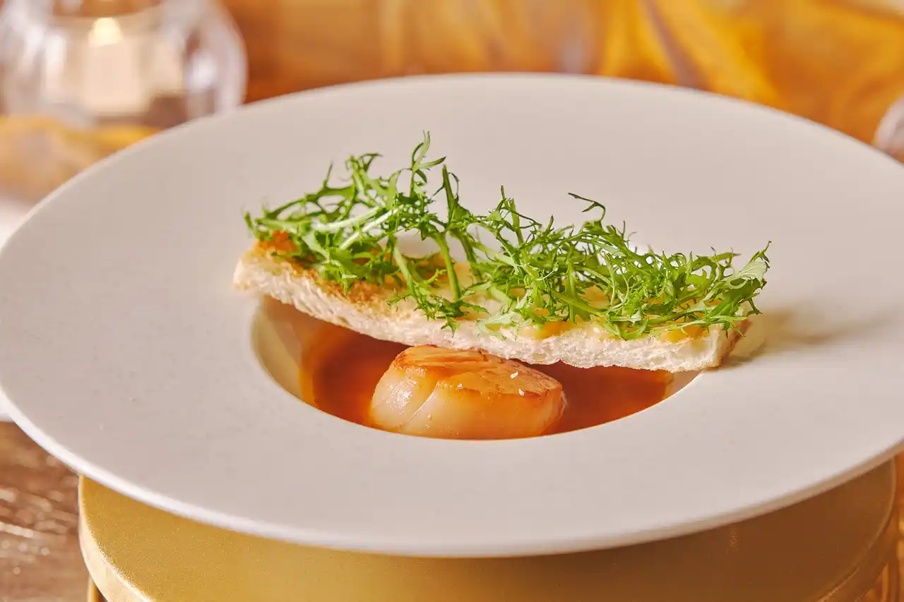 ゴッホが南仏アルルの強い陽光に魅了され、黄色を象徴的に用いたことから、冷前菜では旬の穴子とロブスターを使用したタブレを提供します。温前菜は、「アルルの跳ね橋」をイメージしたブイヤベース、魚料理はアルルの郷土料理でもあるラタトゥイユを取り入れ、南仏の豊かな風土と祝祭の空気を一皿に表現しました。メインディッシュには、プロヴァンス地方の伝統的な牛肉の煮込み料理、ドーブ・プロヴァンサルを現代的に仕立て、南仏の食文化と深い味わいをお届けします。 |