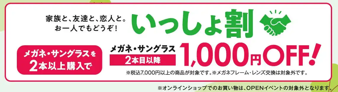 対象:メガネ・サングラスを2本以上ご購入されたお客様 |