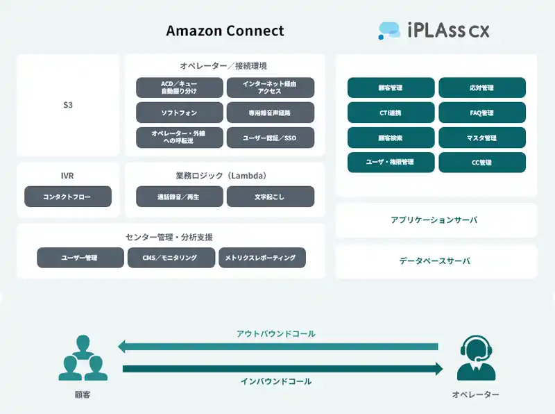 音声基盤にAWSの「Amazon Connect」を採用し、「iPLAss CX Edition」上の連携テンプレートを活用して接続することで、システムの構築にかかる期間と工数を短縮します。また、担当者の権限に応じたアクセス制御機能を備えており、企業の厳格なセキュリティ要件を満たす環境を提供することが可能です。 |