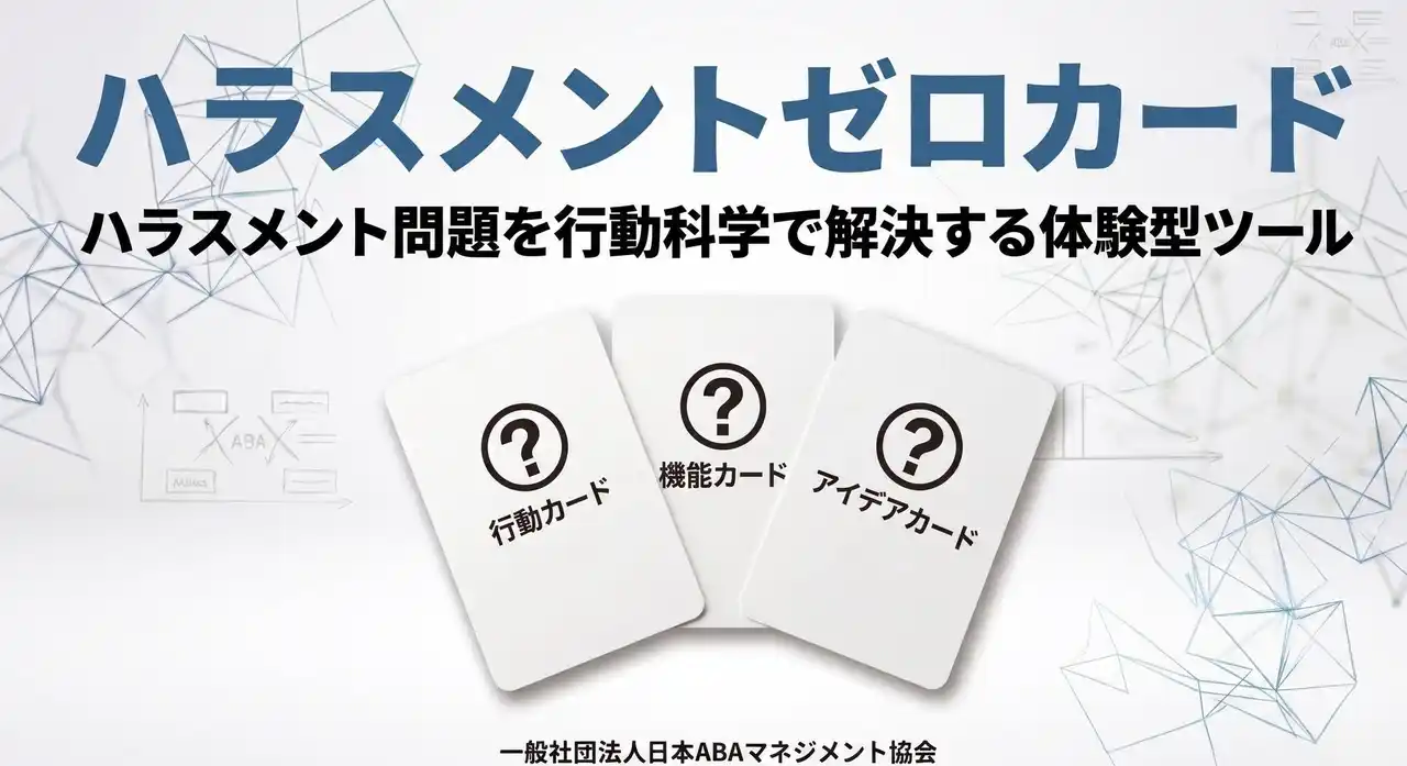 | 一般社団法人日本ABAマネジメント協会(代表理事 榎本 あつし)は、明星大学心理学部の竹内康二教授のもと、応用行動分析学(ABA)の視点を取り入れた体験型カード教材「ハラスメントゼロカード」を開発いたしました。 | |||||||||