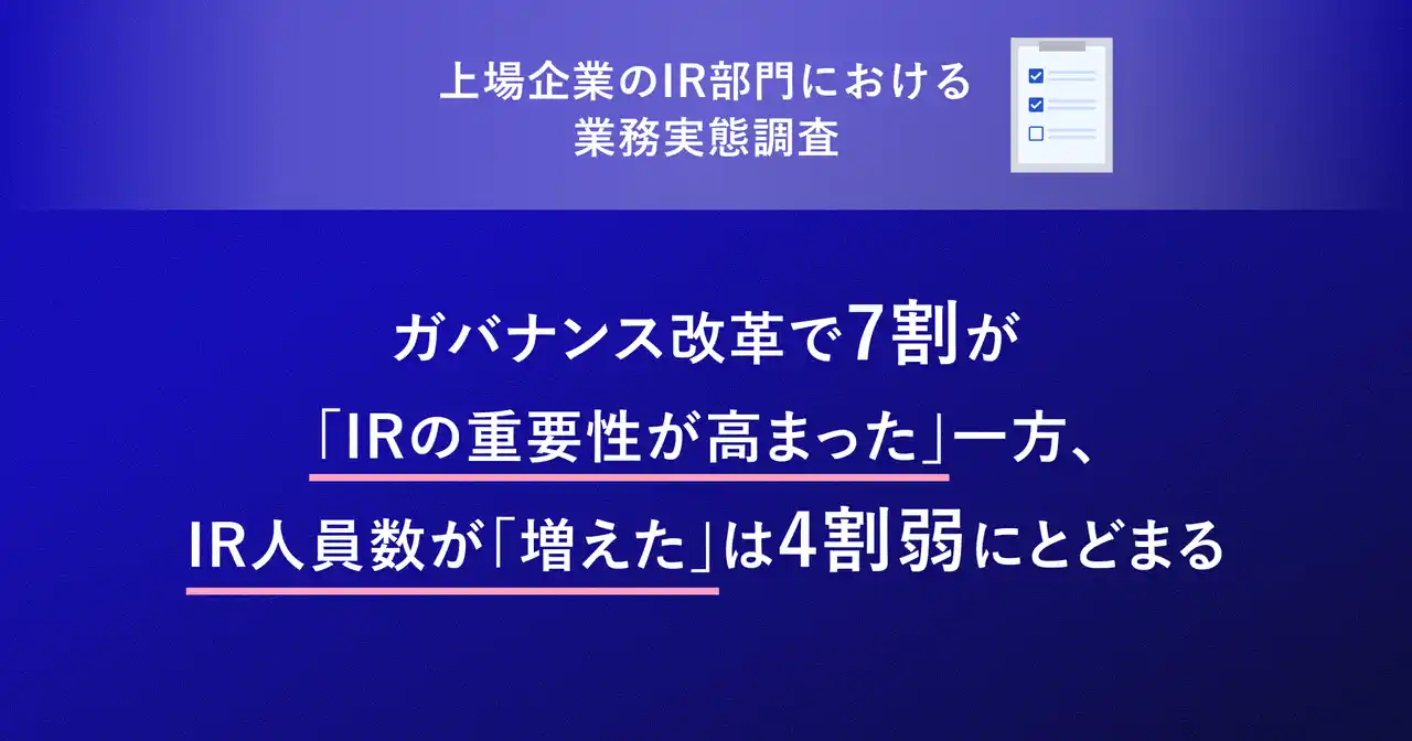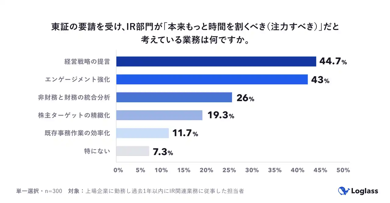 東証の資本コスト意識や対話の質に関する要請などを背景に、IRの戦略的意味が実務現場でも共有されつつあると考えられる。 |