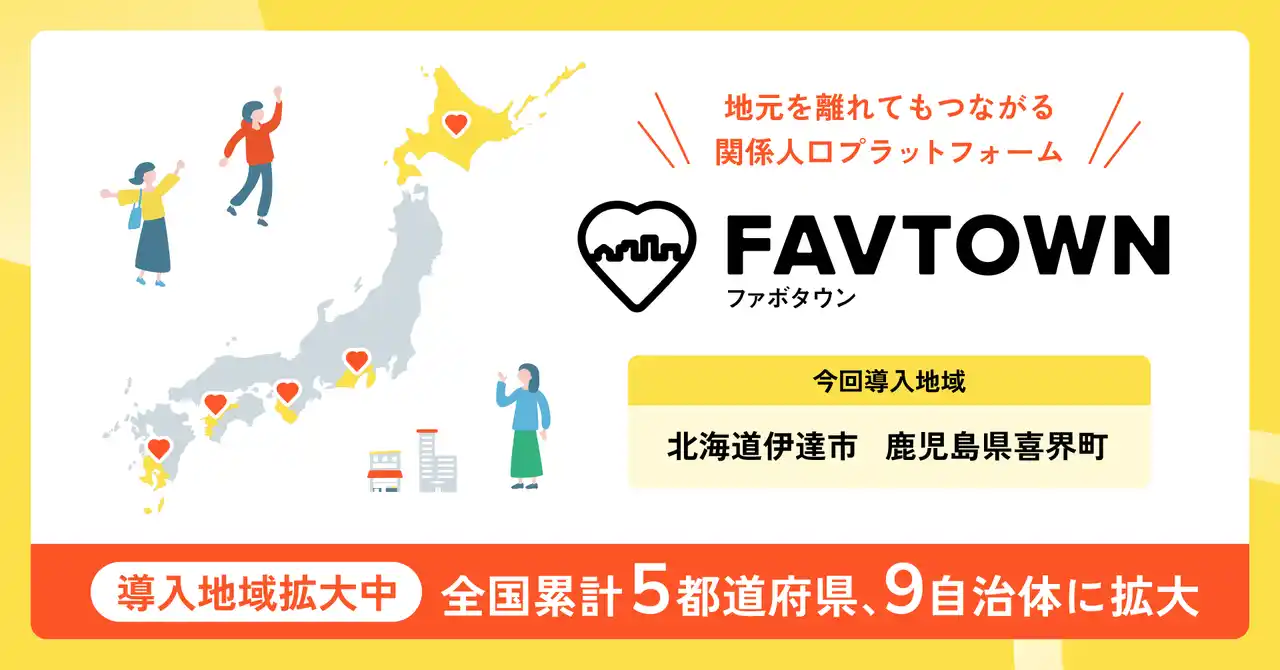 2026年3月に鹿児島県喜界町、4月に北海道伊達市でFAVTOWNの導入が新たに始まり、累計5都道府県9自治体へ拡大 |