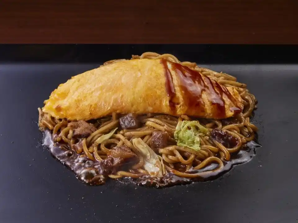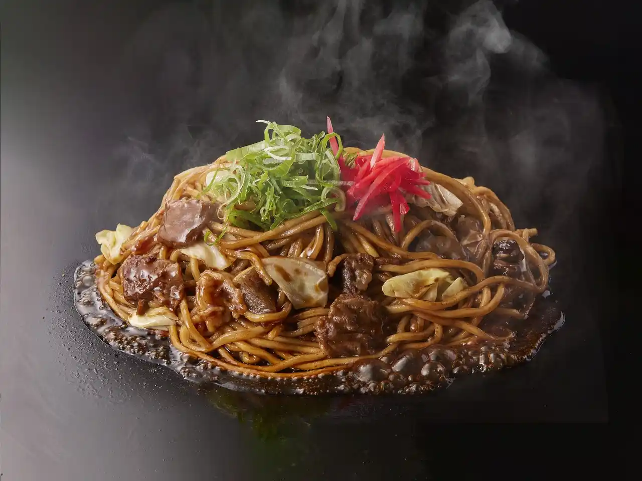 「ぼっかけ焼きそば」に、香ばしく焼き上げたお好み焼きを重ね、味と食感の一体感を楽しめる一品に仕上げました。 |