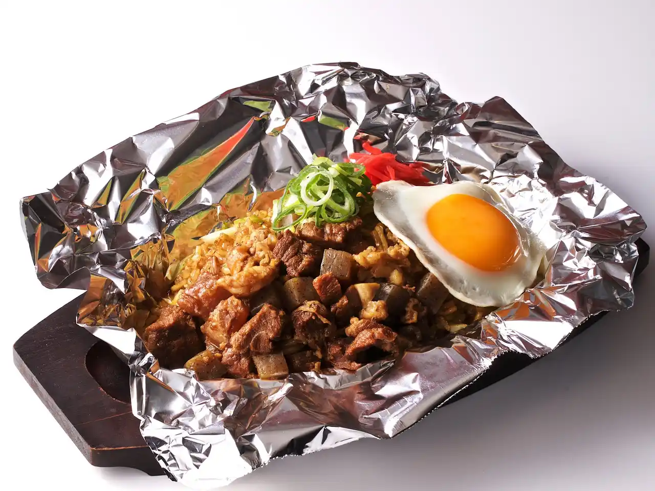自家製麺を鉄板の上で細かく刻み、ごはんと名物のぼかっけを甘辛いソースで合わせたボリュームのある一品です。 |