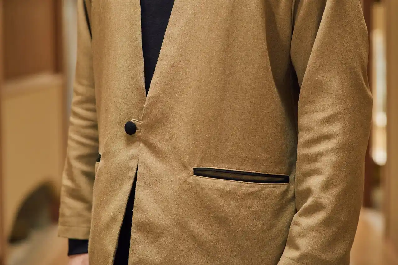 ポケット口に黒のパイピング(縁取り)を効かせ、さりげないアクセントに |