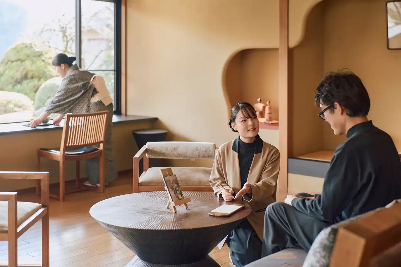 従来、女性は本式着物、男性は里袴と作務衣という旅館における伝統的な装いでお客様をお迎えしてきましたが、開業30年目の「模様替え」を経て館内が“和と洋の融合”と“快適性”を高めた空間へと変化したことを背景に、装いもアップデートします。 一方で「やはり着物を着たい」という声も大切にし、当館では着物か新ユニフォームかを、その日のスタッフの気分で選べる運用に挑戦。多様性とサステナブルな世界観を見据え、旅館の新しい形を目指します。 |