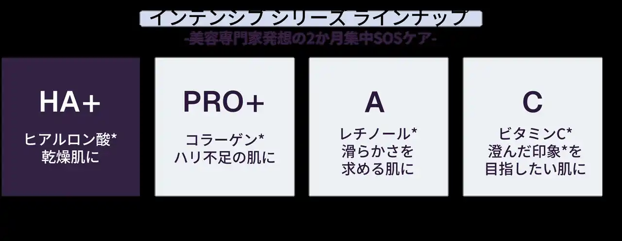 | インテンシブシリーズは、美容専門家発想の肌のSOS サインと深く向き合う2 か月集中ケア。 | ||||||||||||||||