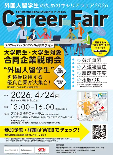 | [イベント名] 外国人留学生のためのキャリアフェア2026(東京) | |||||||||