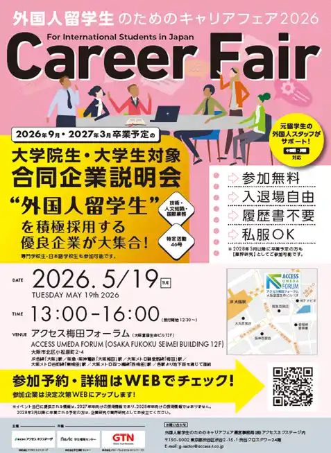 | [イベント名]外国人留学生のためのキャリアフェア2026(大阪) | |||||||||