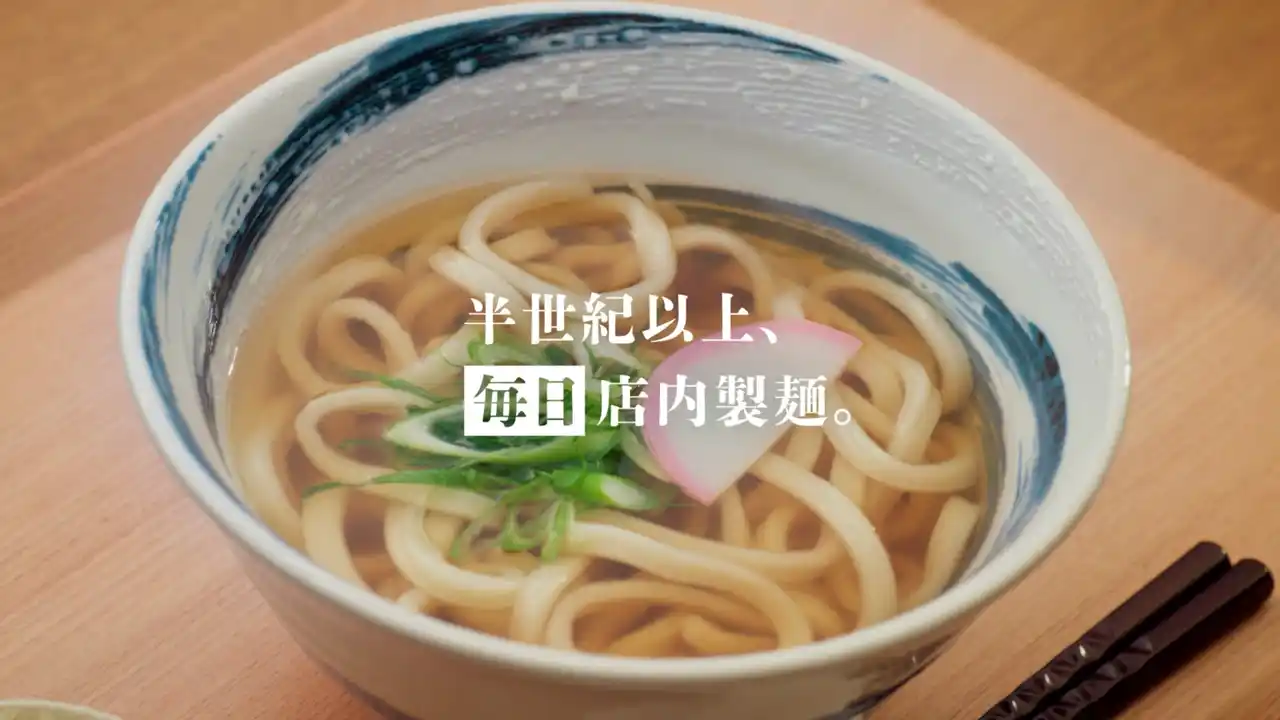 「自家製麺 杵屋」は、1971年に日本初のうどんチェーンです。日本を代表する「讃岐うどん」を創業以来半世紀以上にわたり、店内で毎日独自の製法で製麺。その麺に関西風の黄金出汁を合わせて提供しています。新CM では、江戸時代から大阪に伝わるとされる伝統的な「大阪締め」をテーマに、大阪ではお馴染みの「打ちまーしょ、チョンチョン」のリズムに合わせて構成しました。 |