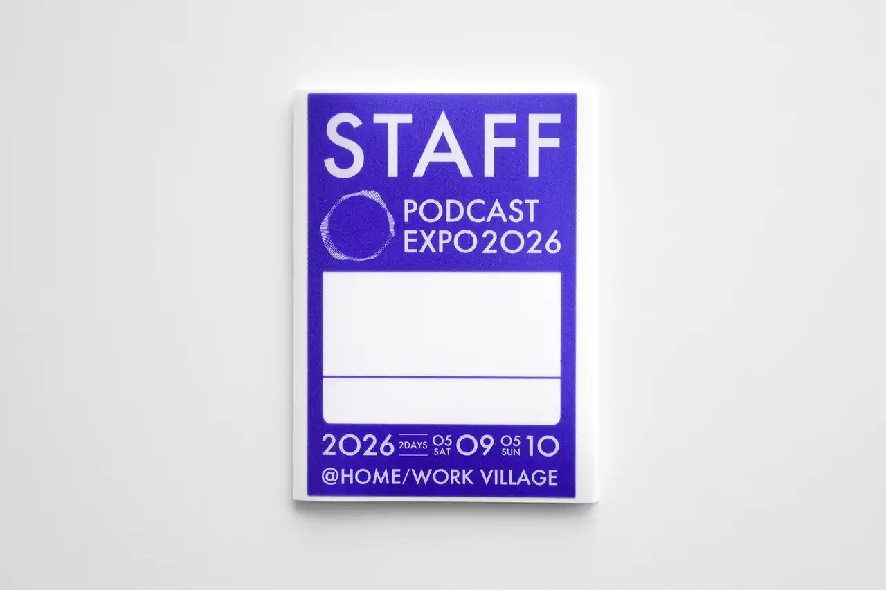 当社は今回の協賛において、来場者に無料配布予定のオリジナルステッカー(6種)をはじめ、スタッフパスを含むPODCAST EXPO 2026における各種ステッカー印刷・製作を担当します。 会場を訪れる方々の期待感や高揚感をさりげなく後押しするツールとして、単に情報を載せるだけではなく、色の再現性、質感、仕上がりの精度にまで目を配った印刷・製作を通じて、イベントの世界観を丁寧に形にしてまいります。 |