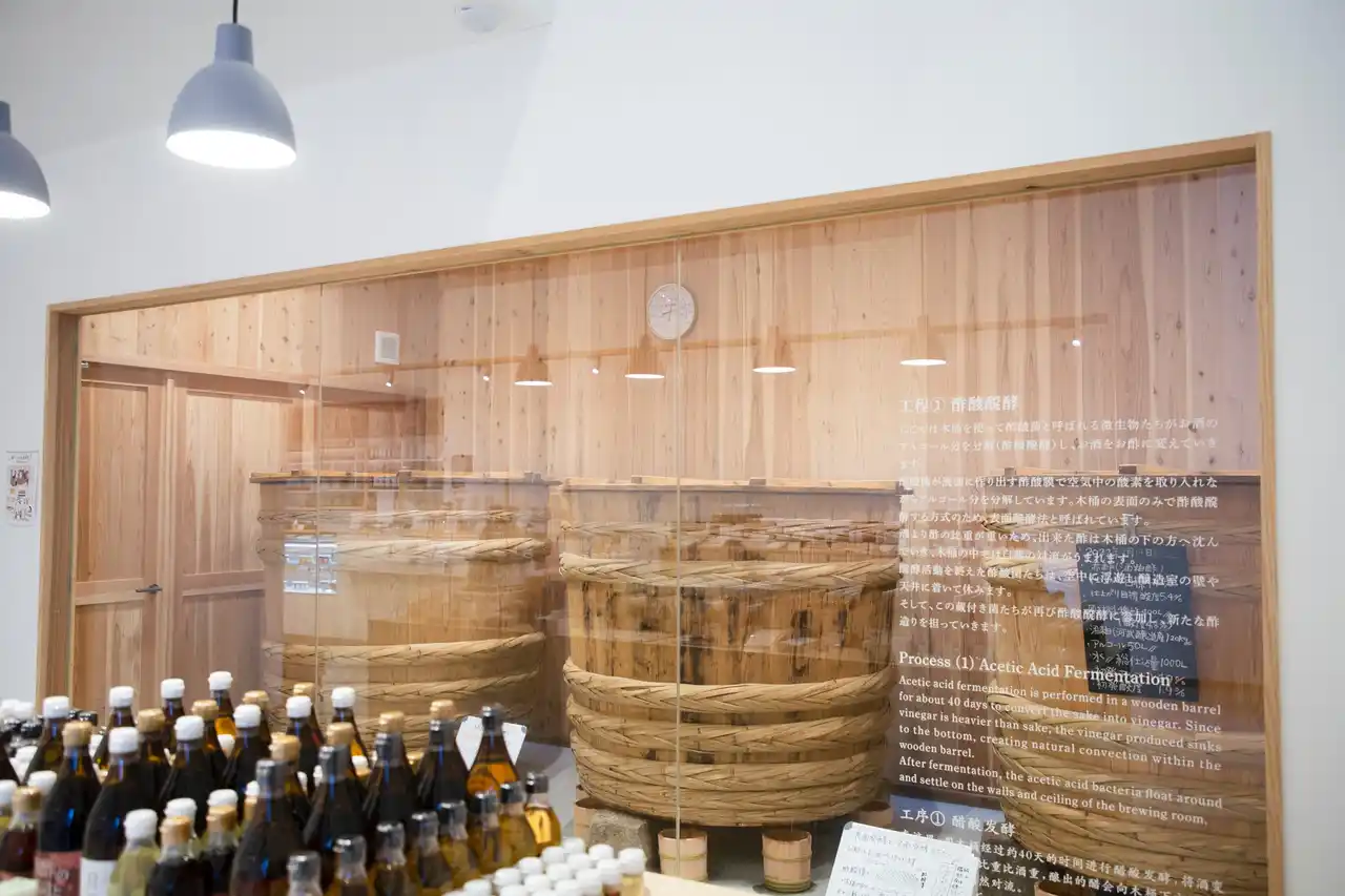 店舗内の木桶で製造するお酢 |