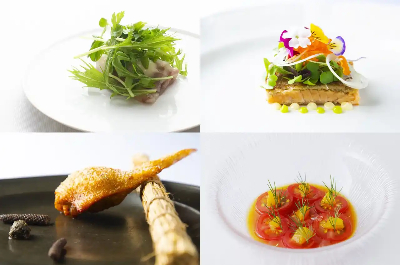 帰国後は東京・麻布「山田チカラ」で茶懐石とスペインのガストロノミーを学び、その後、素粋居にて手島⻯司氏と「ヒノモリ」を開業。 |