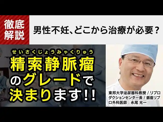 | 精索静脈瘤は、男性不妊の代表的な原因のひとつです。銀座リプロ外科の公式サイトでは、ナガオメソッドによって精液所見の改善が87%と案内されており、精索静脈瘤の治療は、単に手術を行うこと自体を目的とするのではなく、自然妊娠を目指すご夫婦にとって、妊娠の可能性を少しでも高めるための重要な選択肢として位置づけられています。 | |||