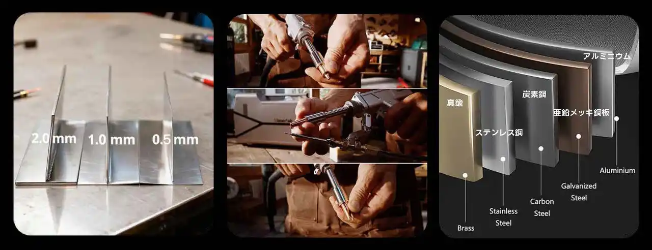 この汎用性により、自宅でのDIYプロジェクトからあらゆる環境でのプロフェッショナルな作業まで、いつでもどこでも溶接体験をお楽しみいただけます。 |