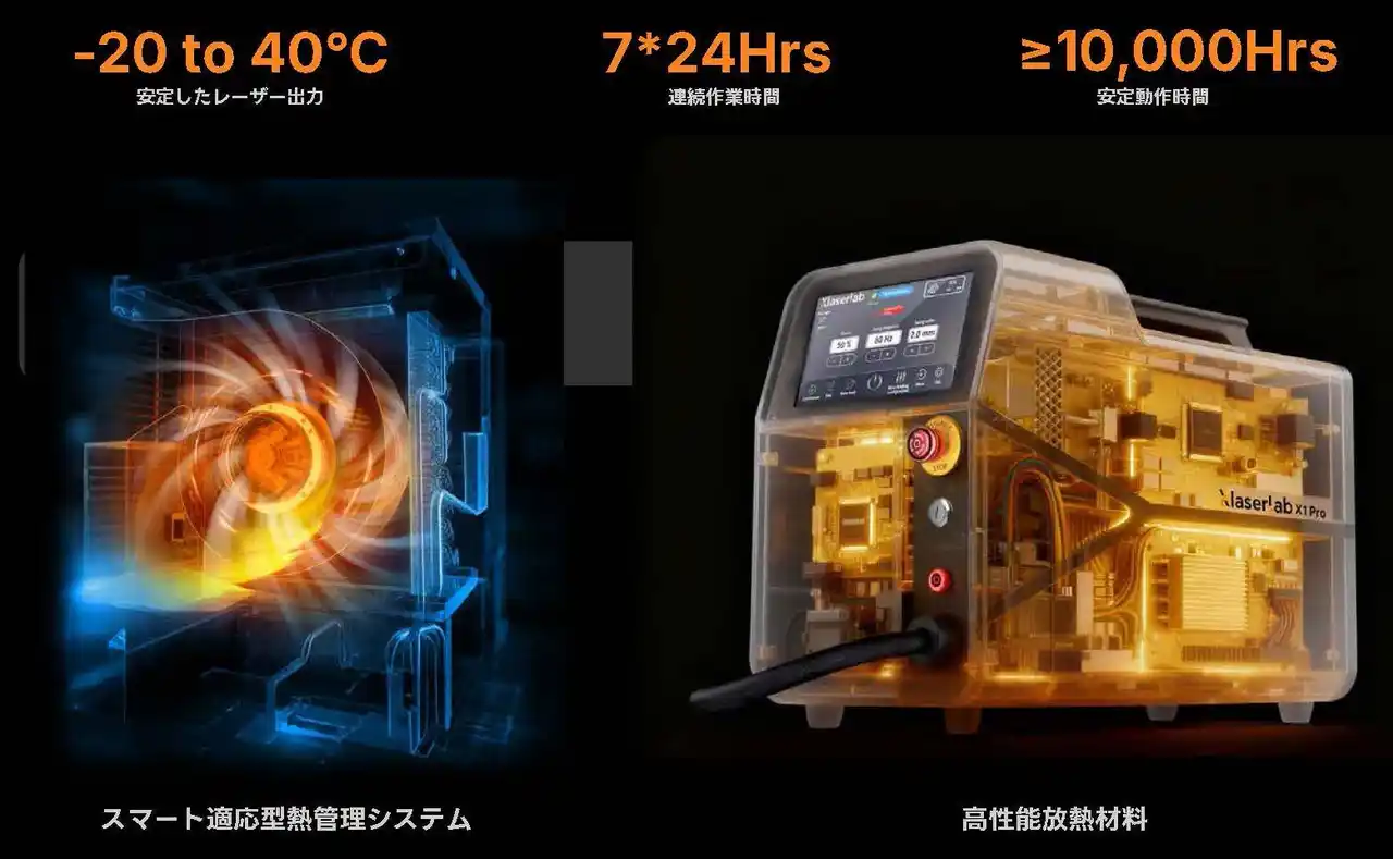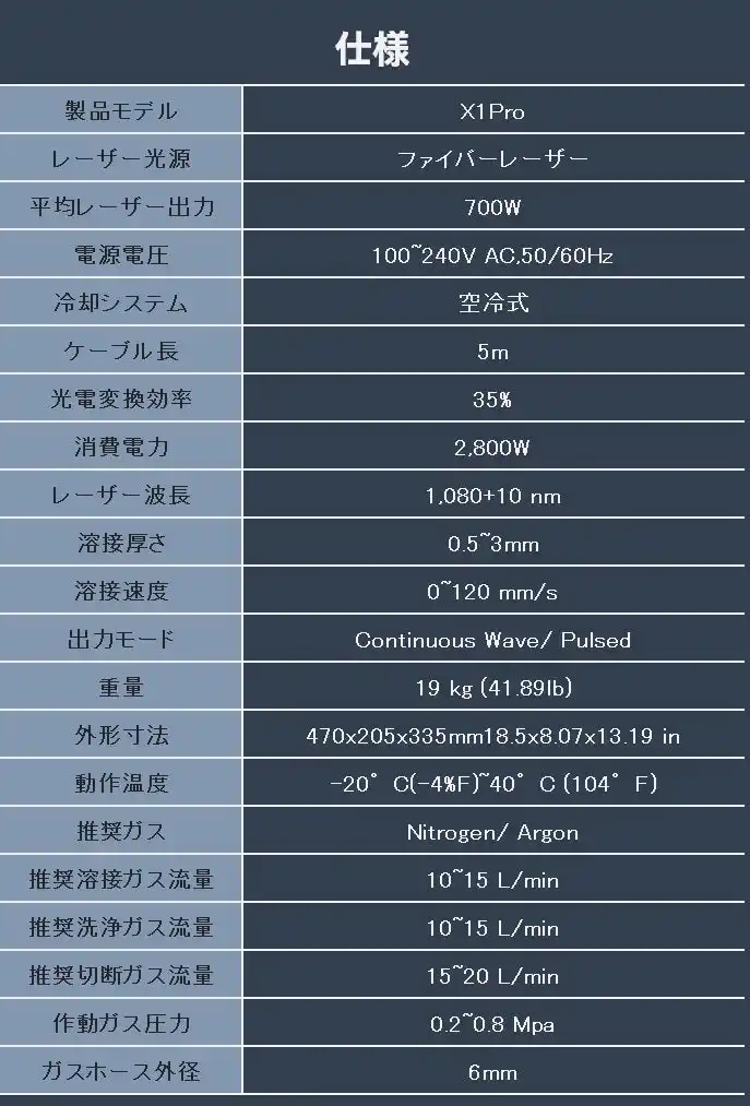 X1 Proは19kg(41.9ポンド)と、軽量化なレーザー溶接機でございます。 |