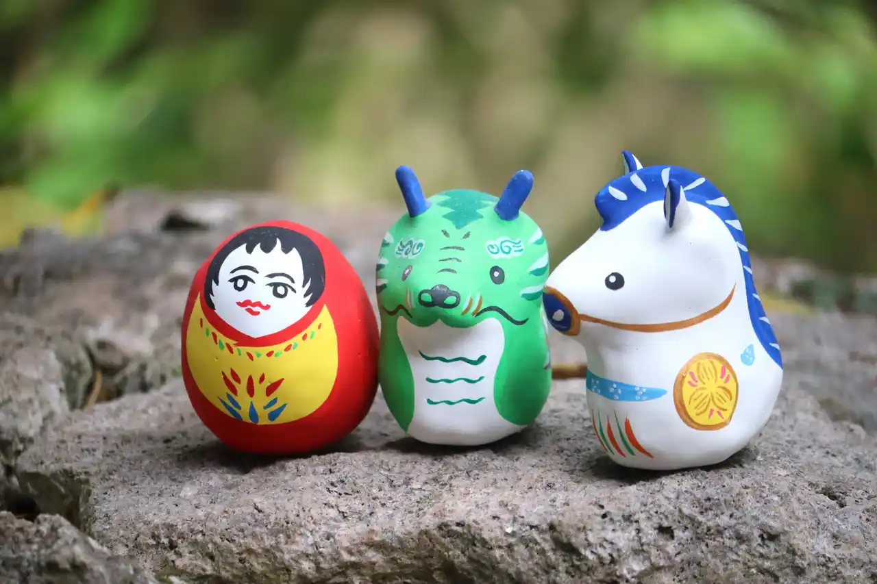 沖縄の伝統的な玩具「琉球張り子」に自由に色をぬって楽しもう! |