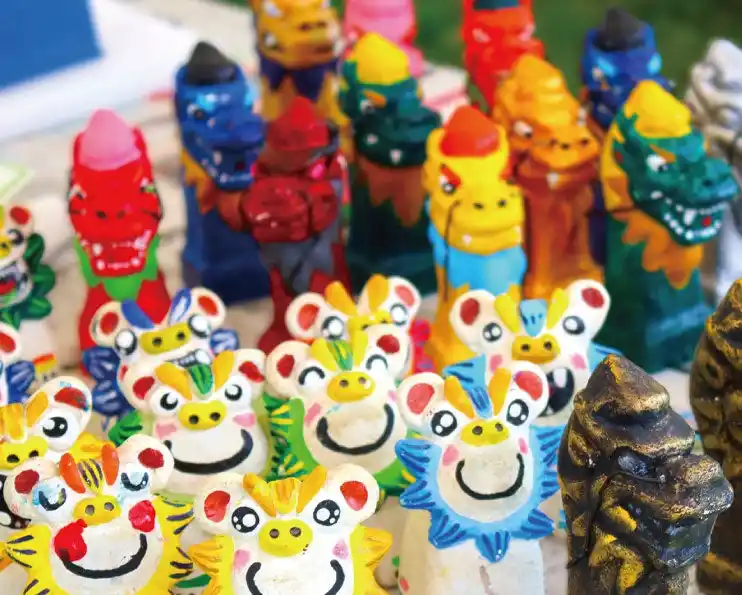 漆喰でできた龍やシーサーに絵付けをして楽しもう! |