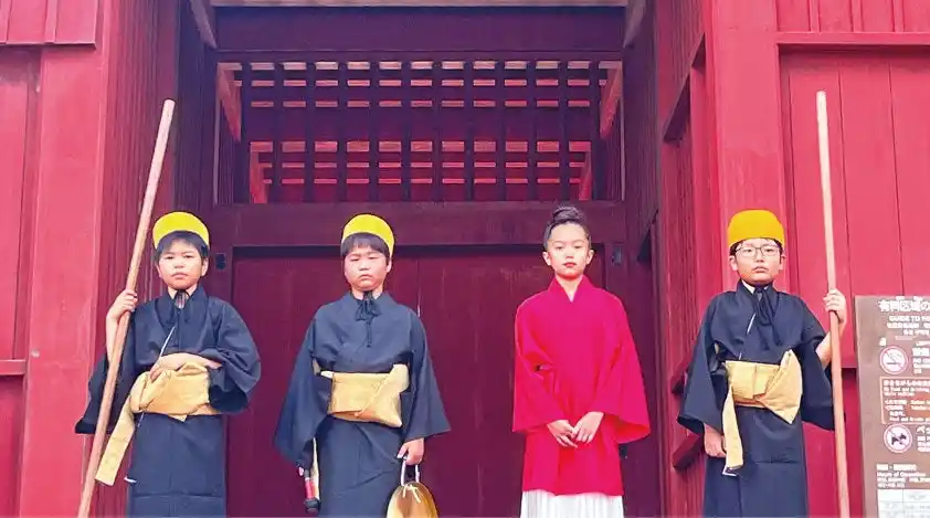 地域の子どもたちが、歴史衣装を着て「御開門」の儀式に挑戦します! |