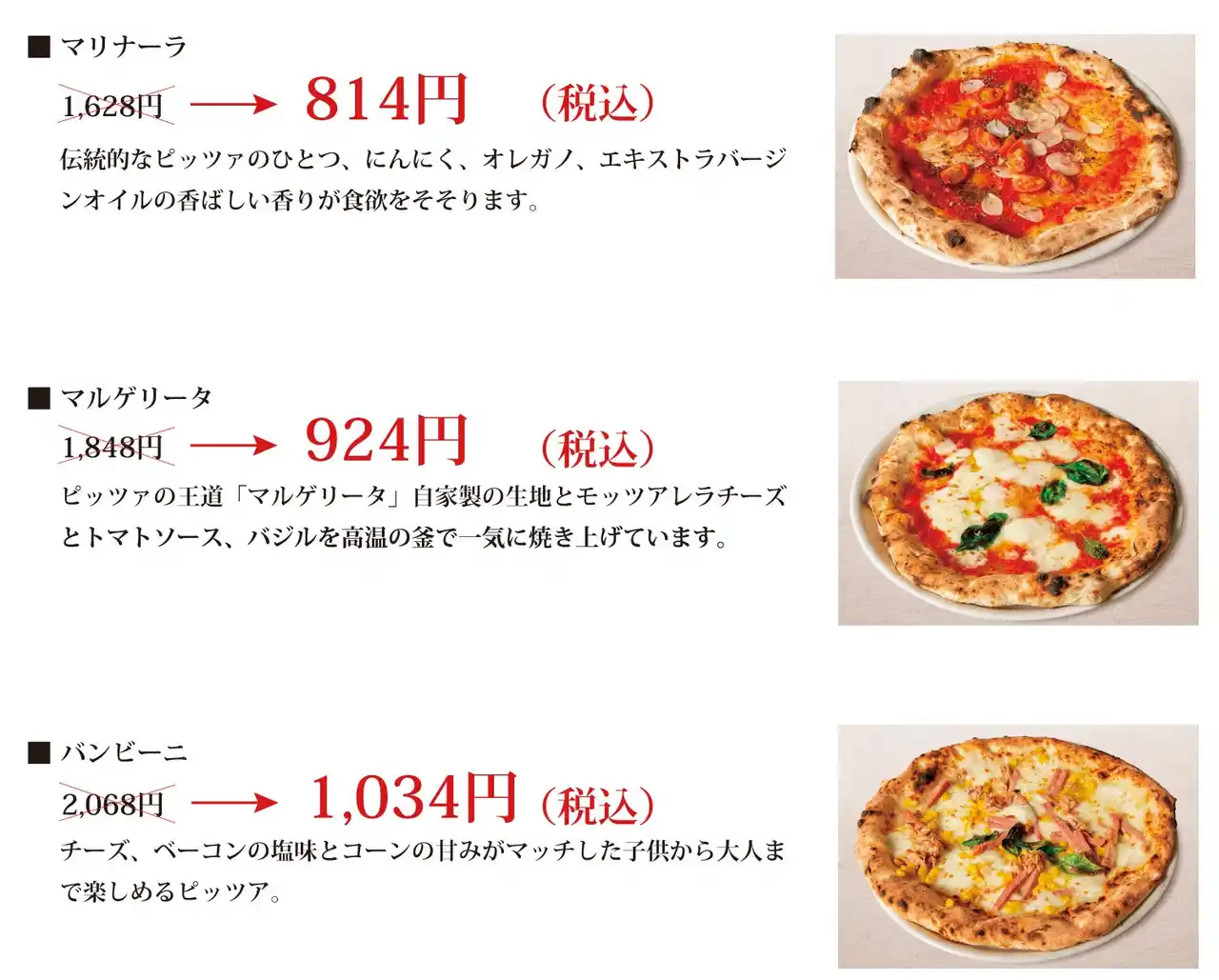 ~ マルゲリータなど、ピッツァ3メニューが一日限りの半額! ~