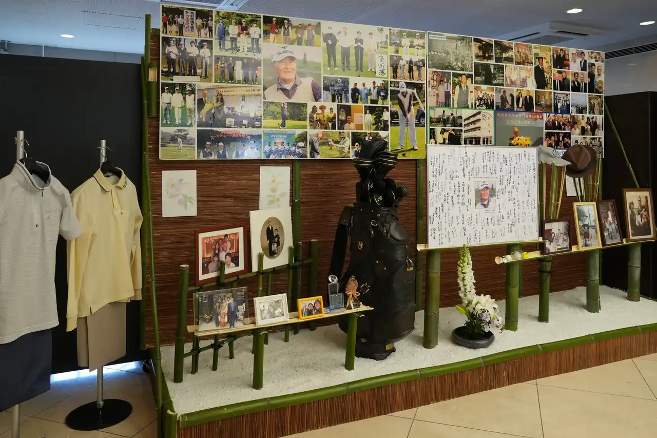 故人の歩みを物語る写真や愛用品が並び、在りし日の姿を偲ぶメモリアルコーナー。 |
