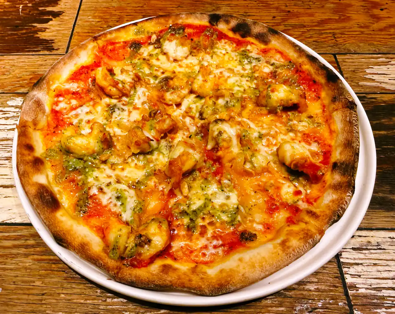 プリっとした食感の海老を贅沢に使用し、ひと口ごとに旨みが広がる一枚。 トマトソースをベースに香り豊かなバジルとガーリックで満足感のある味わいに仕上げました。 |